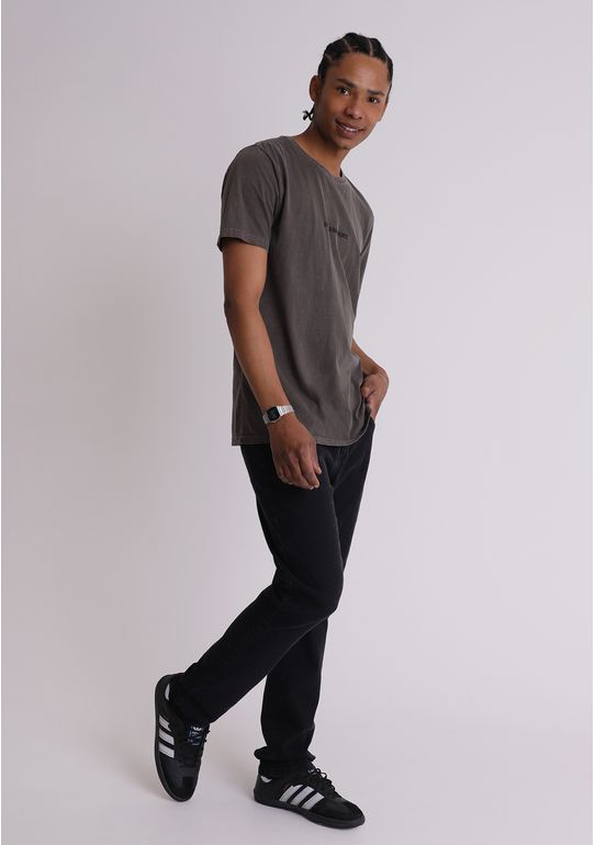 A calça jeans slim black é aquele básico indispensável que combina com tudo e nunca sai de moda. Feita em jeans com elastano, oferece conforto e liberdade de movimento sem perder o caimento ajustado da modelagem slim.\n\nCom cós com passantes para cinto, fechamento por botão e zíper e bolsos frontais e posteriores, ela mantém o visual clássico com um toque moderno.\n\nIdeal pra compor do look casual ao rolê noturno, vai bem com camiseta, camisa ou jaqueta sempre entregando um estilo clean, versátil e cheio de atitude.
